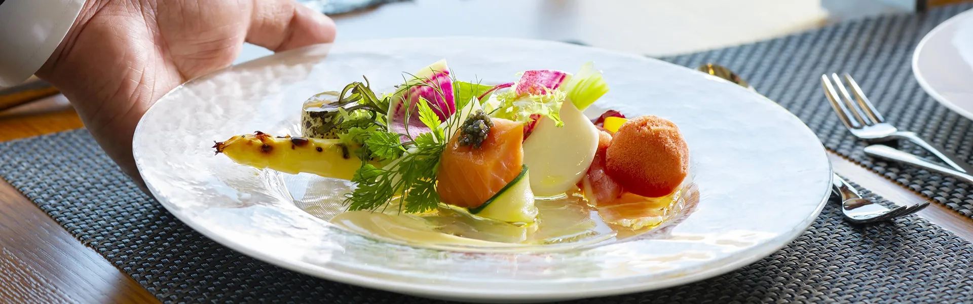 ごあいさつ Greeting長年にわたり修業を重ねたシェフが、一皿ごとに真心を込めて調理します。素材の声を聞き、香りや温度、彩りに至るまで細部にこだわり抜いた料理は、味覚だけでなく五感全てでお楽しみいただけま…